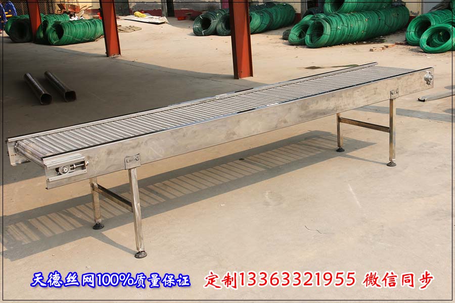 輸送形式有:水平直線輸送、提升爬坡輸送、轉彎輸送等多種輸送形式,根據需要可以在不銹鋼輸送帶的橫截面上焊擋板、鏈條兩側加裝擋板等附件,能滿足各種輸送行業的要求。 鏈板輸送機以標準頂板鏈為承載面,由馬達減速機做為動力輸送,輸送帶在專用的導軌中運行,根據生產工藝流程的不同鏈板可分為轉彎、直線或提升型,還可實現自動輸送線、分別包裝流水線等。