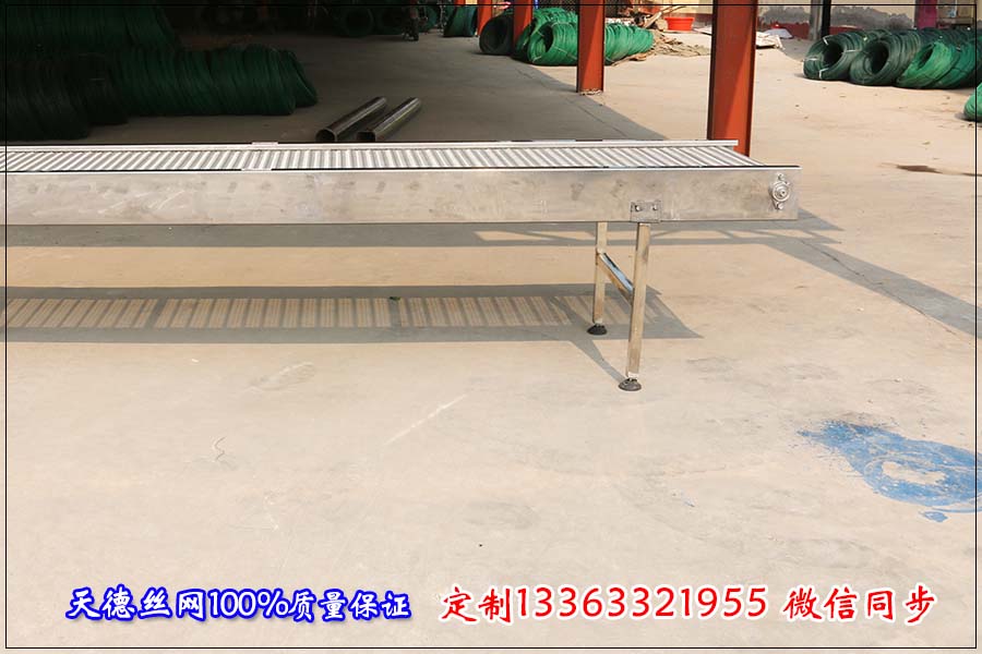 如果輸送物料體積大 、密度大那就要在網(wǎng)帶下方加裝軌道支撐;如果輸送線比較長的話把網(wǎng)帶輸送機分節(jié)來制作而不能做成一條輸送線,因為網(wǎng)帶輸送機超過 30米的話輸送網(wǎng)帶在牽引力下延伸率太大,造成輸送機脫軌或者跑偏。 隨著網(wǎng)帶輸送機優(yōu)點的突出使用領(lǐng)域也越來越廣泛,像現(xiàn)在環(huán)保行業(yè)、 污水處置行業(yè)也很多的用到網(wǎng)帶輸送機。