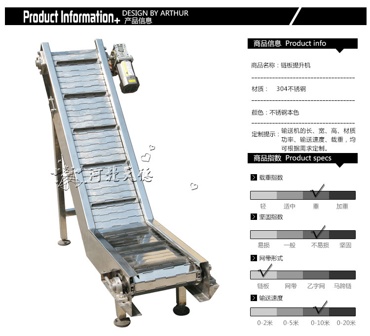 2.鏈板有不銹鋼和工程塑料等材質,規格品種繁多,可根據輸送物料和工藝要求選用,能滿足各行各業不同的需求。