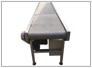 輸送形式為鏈條式金屬網帶,結構形式為轉彎形式,轉彎角度為100度左右,機身采用2.5不銹鋼折彎加工,輸送機腿能夠進行上下30公分的調節,輸送機寬度400毫米,鏈條金屬網帶寬度為350毫米,采用1.2毫米的不銹鋼絲壓彎串接而成的,使用的是U型轉彎鏈條,采用6毫米的支桿鏈接。這種結構形式的金屬網帶耐用性很高。是輸送行業與食品行業中不錯的選擇。