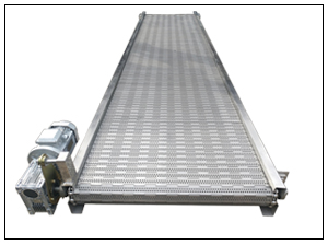 這臺鏈板不銹鋼輸送機的總長度為5米,輸送機總寬度為0.8米,沒有腿,客戶自己根據需要在焊 接機腿。采用3.0毫米厚度的鋼板折彎加工成的機身,不銹鋼鏈板輸送帶的板厚為2.0毫米,輸送鏈條節距為38.1毫米,桿直徑為8毫米,鏈板輸送帶表面打孔的直徑為3.0毫米。配套使用的鏈輪為直徑120毫米左右的。電機采用0.75千瓦電機,配套使用的減速機、變頻器都會安裝好。